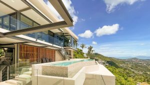 The 4 bedroom villa is located on one of the highest points on the island and therefore offers a breathtaking view. The area is very quiet. In a few minutes you can reach the beach of Chaweng Noi, Chaweng beach or Lamai. There are very good Thai restaurants nearby, and there is also something for friends of organic cuisine. There is a 9 hole golf course nearby and 2 elephant stations and a lookout tower are within walking distance.